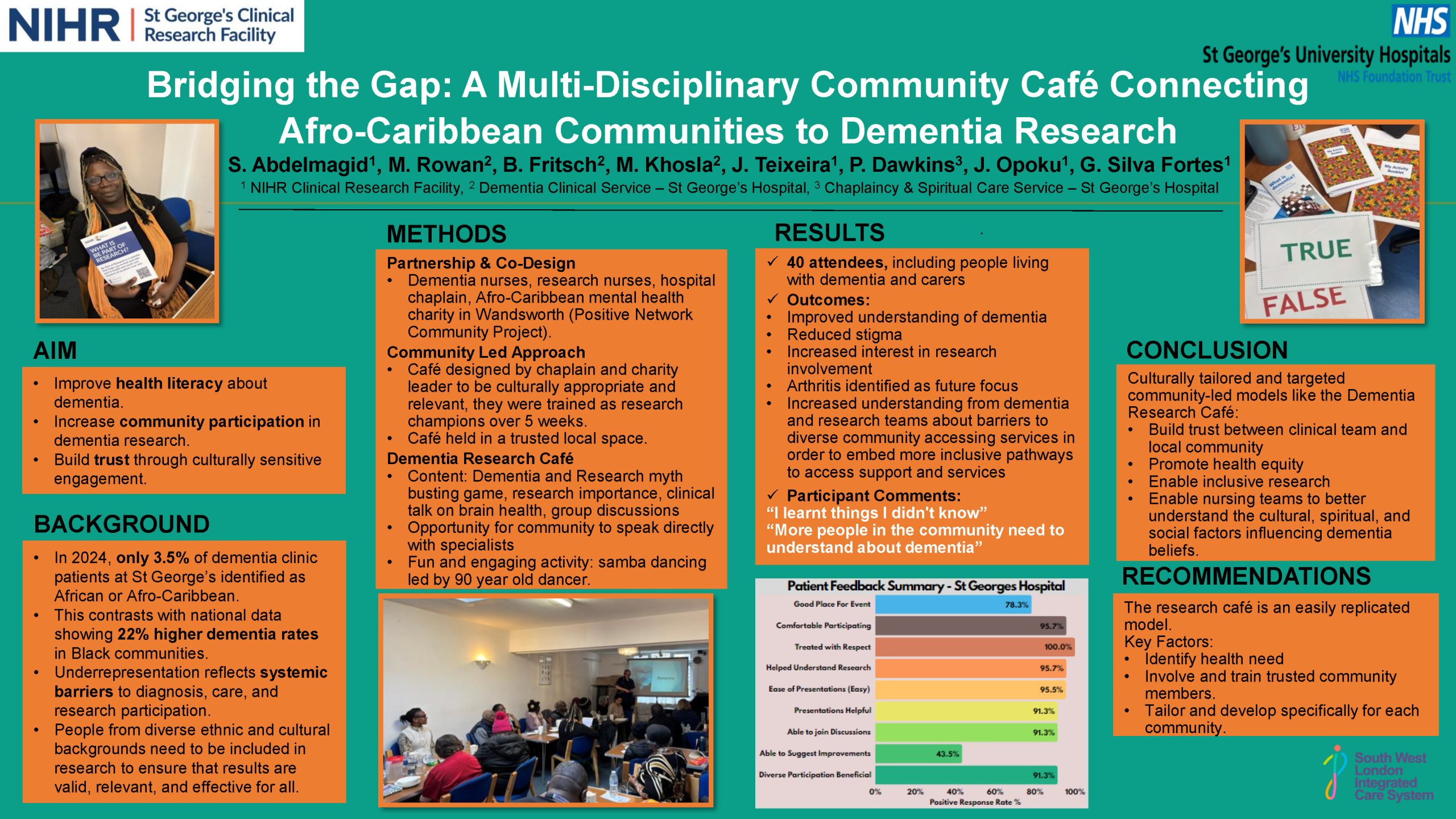 Research Cafés have brought together people who are often underrepresented in research, including older adults, carers and people from Black and Asian communities. Most participants say they felt respected, listened to and more confident about getting involved in research afterwards.